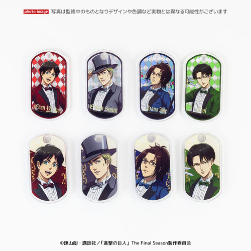 アクリルの表面と裏面でデザインが異なるドッグタグ風のアクリルキーホルダーです。